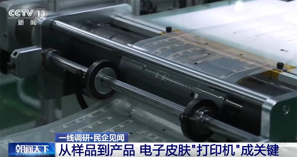秘诀是车间里这一台台“打印机”。记者看到,精密的“电子皮肤”竟然是被“打印”出来的,一卷空白材料进入设备,出来时已变成一卷布满传感器阵列的“电子皮肤”。