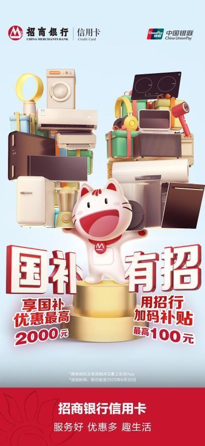 例如,招商银行信用卡持续响应国家政策,推出消费品以旧换新金融方案。今年以来,招商银行信用卡在国家“以旧换新”财政补贴的基础上进一步加码,在各地区上线“国补有招”叠加优惠活动,客户在活动指定的门店,使用62开头招商银行银联信用卡付款,可享受国补招行专属加码补贴,最高可叠加优惠达100元。截至5月底,活动已让超3万名持卡人享受到招行加码补贴优惠。