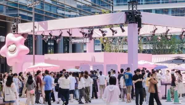 除了线上销售火爆,朵薇在线下的号召力也令人惊叹。6月17日,“朵薇”选择在上海抖音总部所在地新江湾城广场,以“City Colour”为主题,精心策划了其首场线下快闪活动——“Domyway 朵薇 ·CITY PINK @SH”,这场持续11小时的活动,吸引了超30000人次的参与。活动中,品牌方工作人员在烈日下主动为活动参与者撑伞的细节,被现场媒体捕捉并传播开来,赢得了网友的广泛好评和点赞,为品牌形象增添了富有人性温度的一笔。这场线下快闪活动,也被外界视作朵薇意图突破线上单一维度,向消费者传递更立体、更具互动感品牌形象的重要一步。