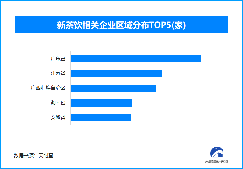 从区域分布来看,广东省、江苏省、广西壮族自治区新茶饮相关企业数量位居前列,分别为超4.2万余家、2.9万余家和2.7万余家。