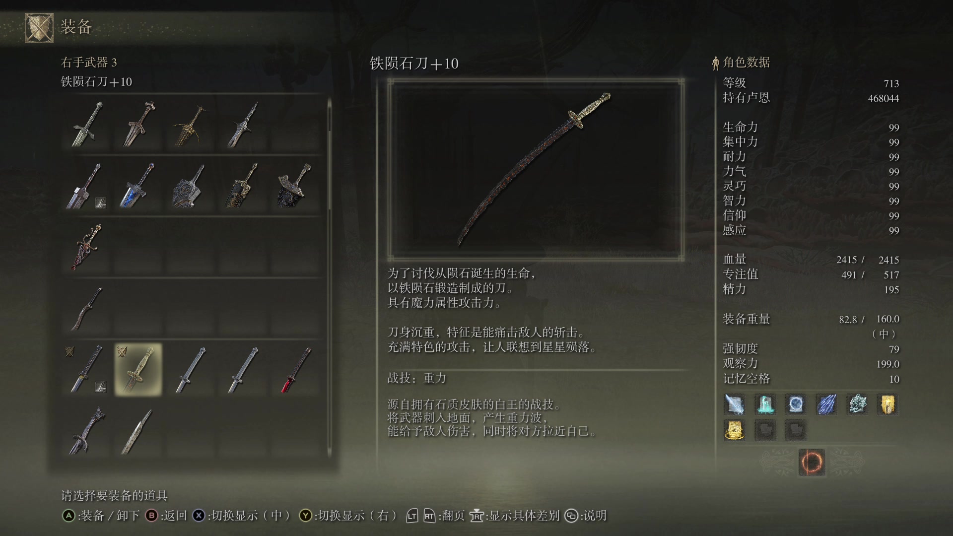 铁陨石刀的属性在《艾尔登法环》中可以说是相当突出,高的基础伤害和较好的力量加成使其成为力量型角色的理想武器选择。由于其独特的攻击方式,它在对战某些具有护甲防御的敌人时,可以发挥出更大的威力。铁陨石刀在使用时具有较高的耐力消耗,这也意味着玩家需要在战斗中精打细算自己的耐力值,合理安排攻击和防御。