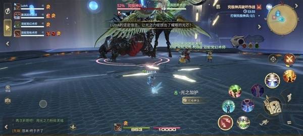 大气爆发:究极神兵召唤迦楼罗,并同时发动全屏AOE,治疗职业注意恢复血量。