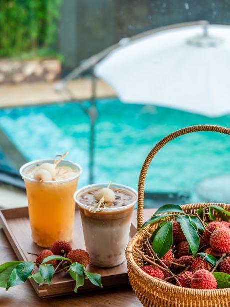 在荔枝丰收的季节,广州古荔园民宿为住客提供鲜荔枝拿铁、鲜荔枝冰茉莉等饮品。受访者供图