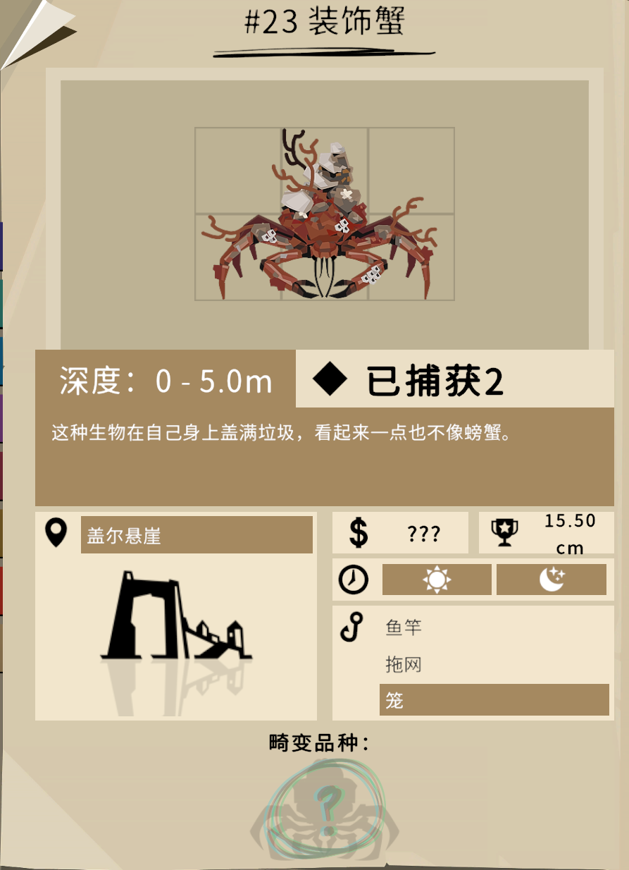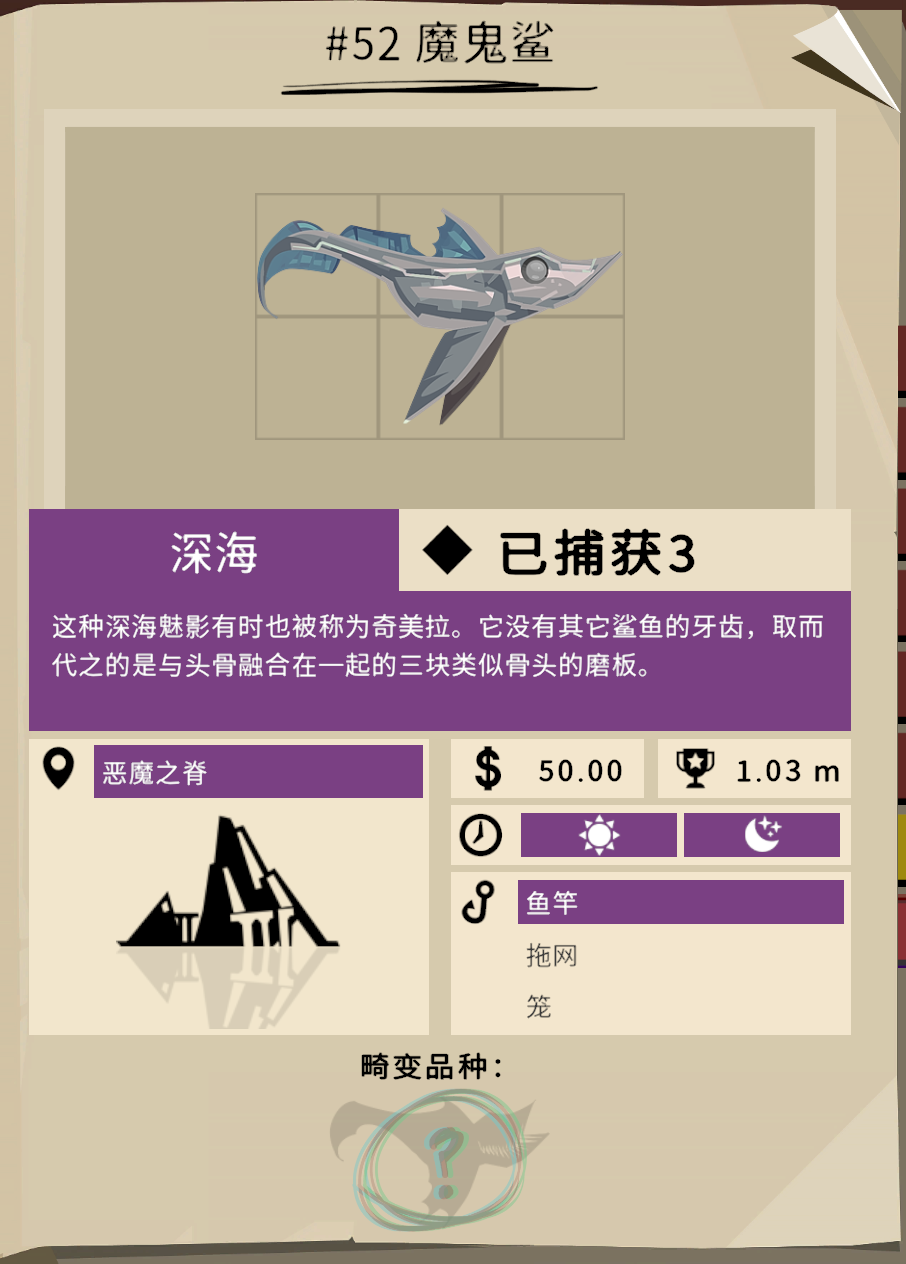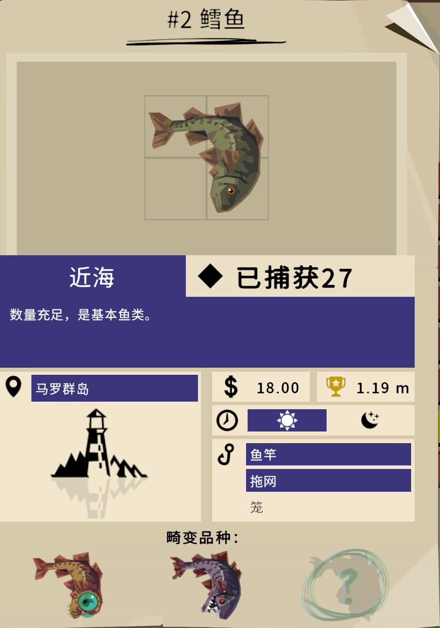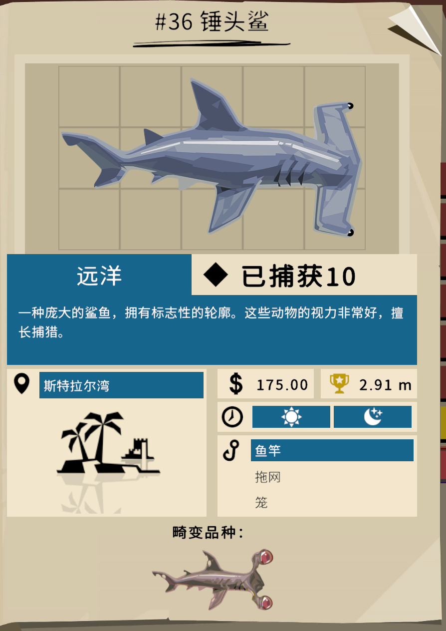 捕鱼时还要注意以下几个条件,对应水域的捕捞设备,鱼类出现的地区位置,昼夜时间等等,玩家可以通过图鉴来查看其中的一些讯息。