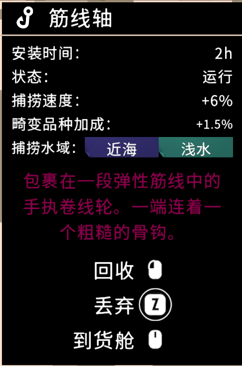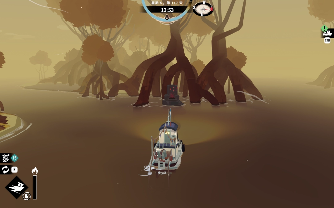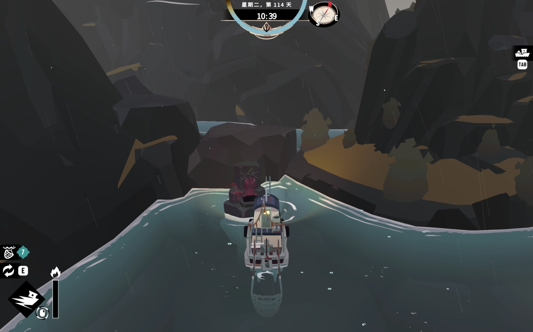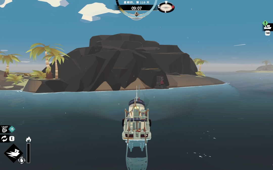离开港口,在海域上移动和捕鱼都会消耗时间。另外,渔船撞到岩石和墙壁时会使船体受损导致船上的设备无法使用,因此驾驶时要注意躲开。