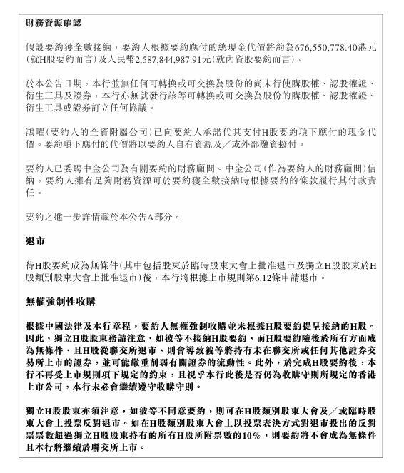 公告披露,待H股要约成为无条件(其中包括股东于临时股东大会上批准退市及独立H股股东于H股类别股东大会上批准退市后,九台农商银行将根据上市规则第6.12条申请退市。