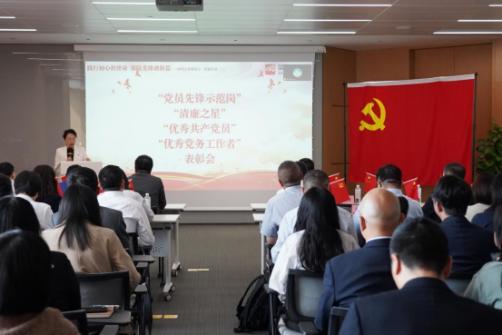 在庄严肃穆的氛围中,公司党委委员、纪委书记杨新章带领全体党员重温入党誓词,铿锵誓言彰显了党员的初心与使命。随后,卢俊副书记宣读了“党员先锋示范岗”“清廉之星”及2024-2025年度“优秀共产党员”“优秀党务工作者”表彰决定,付永进书记和杨新章书记为获奖代表颁发荣誉证书。