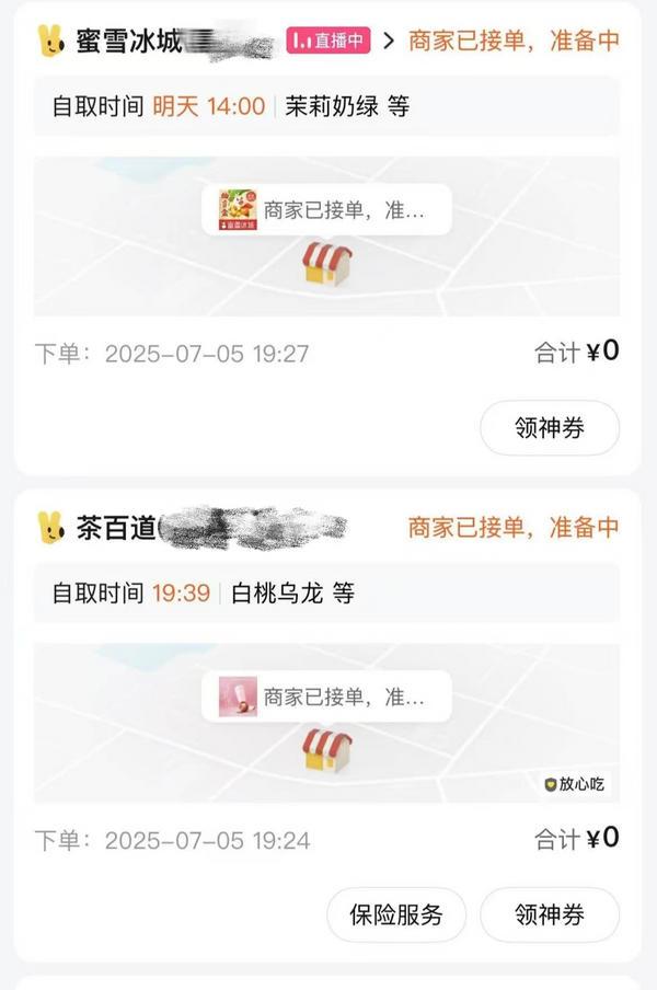 这番订单的激增,与美团外卖投入的大额补贴有关:据社交平台反馈,不少网友发现,美团在7月5日投放不少“0元购”外卖红包券,领取后可以免费获得奶茶、汉堡等,选择外送需要满一定额度并支付配送费,选择到店自取则完全免费。