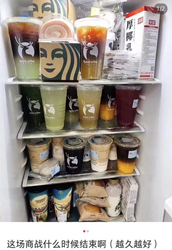 这番力度颇大的折扣,导致在全国范围内外卖订单数量激增,不少消费者在网上晒出自己在冰箱里囤满蜜雪冰城、茶百道等照片,感慨“实在是喝不下了。”