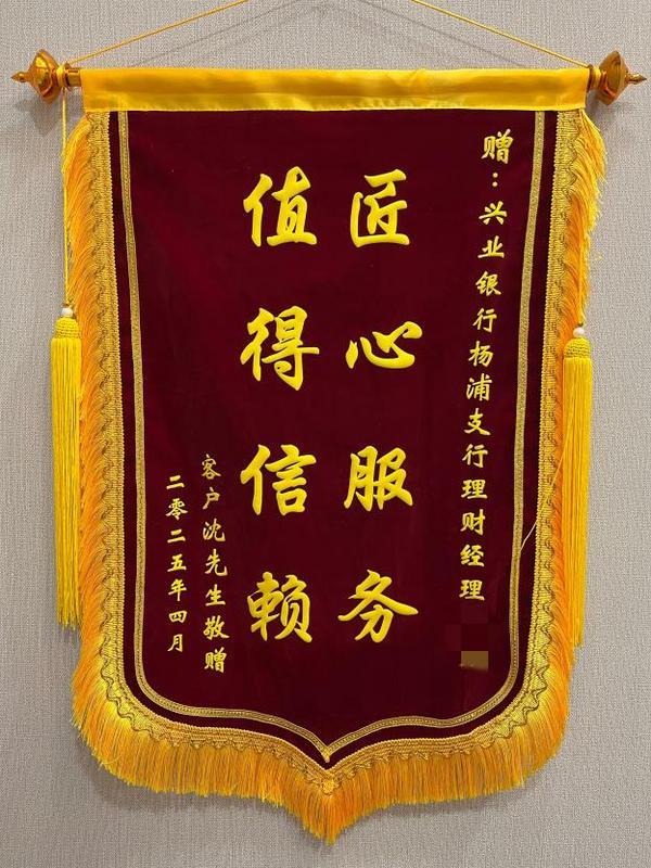 在兴业银行上海杨浦支行,来自残障人士的感谢信被用心保存,墙上的锦旗也格外耀眼。感谢信上,客户表示自己是一位听力残疾的84岁老人,工作人员每次都态度温和,敬重老人,不厌其烦,老人心生感激。锦旗上,“匠心服务 值得信赖”几个字背后藏着老人沈先生的心声。沈先生表示,因为听力障碍,总是不愿意出门,对银行的金融服务更是产生排斥,而兴业银行的真诚服务让他放下芥蒂,心生感激。