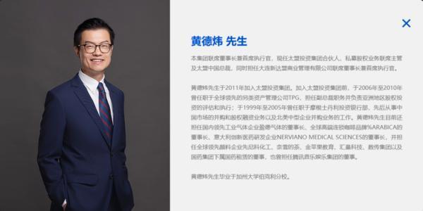 黄德炜是太盟投资集团(PAG合伙人、私市股权联席主管及太盟中国总裁。胡正伟是阿布扎比投资局私募股权部门中国区主管。