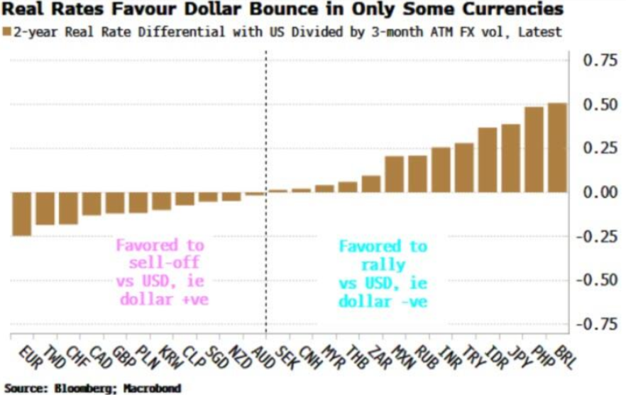 另一方面,也有几种货币的实际利率支持其兑美元进一步上涨,其中包括墨西哥比索、印度卢比和日元。
