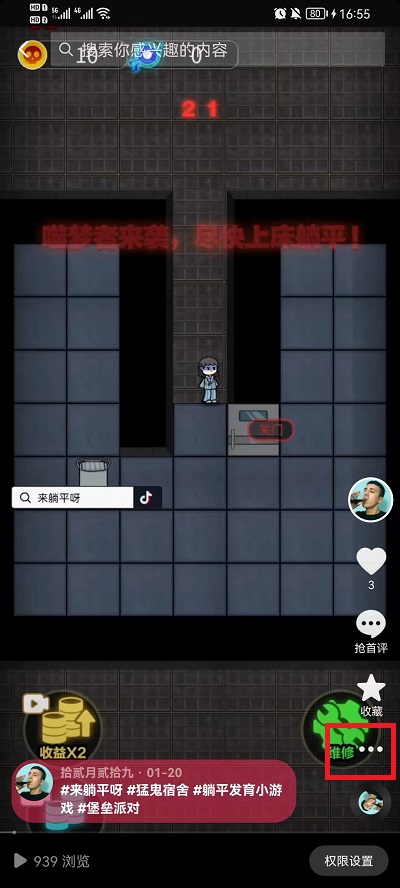 2、在抖音的播放界面点击其中右下角的【...】打开更多的功能选项;