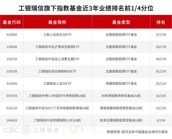 近年来,被动投资凭借多重优势特征,正成为投资者进行资产配置不可或缺的一环。工银瑞信在指数及ETF业务上精准施策,不仅产品线日益丰富完善,致力于为投资者提供高效、透明、跟踪精准的市场贝塔捕捉工具。银河数据统计显示,截至6月30日,工银瑞信基金旗下共有22只产品在近一年、近两年、近三年和近五年等不同区间中位居同类前1/4,核心宽基与行业主题赛道上多点开花。