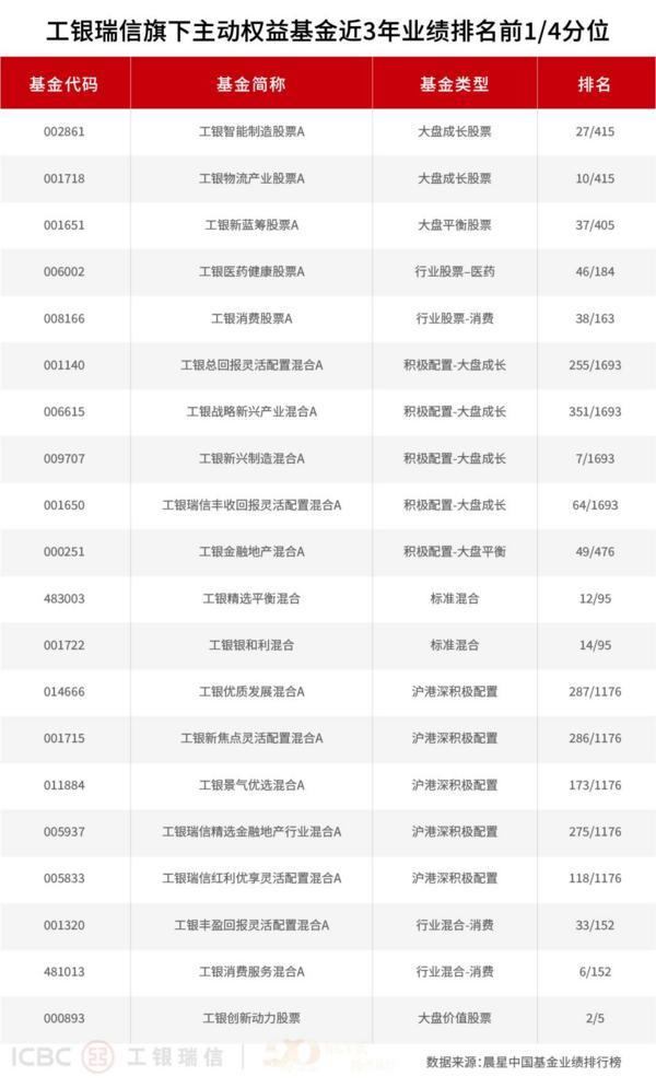 在不同风格和行业主题产品中,工银瑞信基金旗下产品全面开花。根据Morningstar晨星中国数据统计,截至2025年6月30日,在近一年、近两年主动权益类基金业绩榜单中,工银瑞信旗下分别有20只和21只产品名列同类前1/4分位;更长周期来看,近三年与近五年统计区间中,工银瑞信旗下分别有20只和30只主动权益类基金位居同类前1/4。