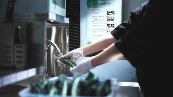 在主打“鲜嫩”的蔬菜领域,最为关键的就是解决绿叶菜的农残和锁鲜问题。书亦本次甘蓝皱叶菜原料全部采用合作基地直供,定级标准明确,品质要求严苛。每日现摘的菜叶在经过 质检、打包等环节,再通过冷链物流高效送达门店,全程标准化可溯源。同时,门店侧书亦也制定了严格的清洗和备料标准,每一片皱叶甘蓝都要在门店再次经过冲洗、消毒、清洗、分切四道工序,才能与消费者见面,充分保障每杯饮品入口的健康与安全。