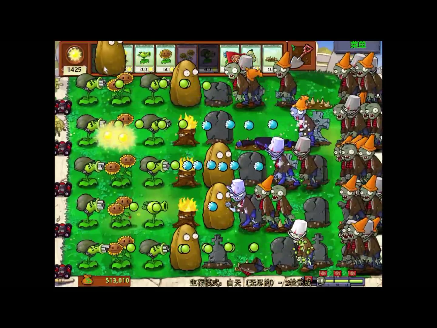 在开始游戏后,首先种上一颗向日葵,利用它产生阳光,给你后续植物的种植提供能源。然后尽快布置豌豆射手,在前期以它为主要攻击手段。任何时候,只要僵尸出现在视线内,就应立即用豌豆射手进行攻击。在前期,我们要确保第一、二道墓碑的消灭,以便给僵尸制造难度。