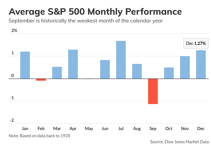 其中,九月尤其艰难。道琼斯市场数据显示,自1928年以来,标普500指数在九月份平均下跌了1.1%。
