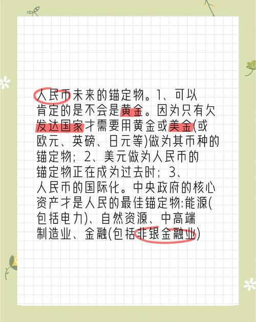 2、通过实施特定的经济政策来锚定本国货币的价值,政府可以通过控制通胀率来锚定本国货币的购买力,这种锚定方式需要政府实施严格的财政政策和货币政策,以保持物价稳定和货币价值稳定,这种方式有助于增强公众对货币价值的信心,并促进经济发展。