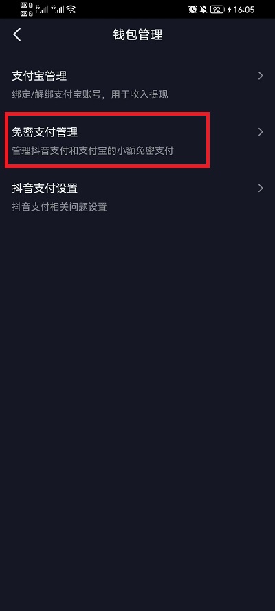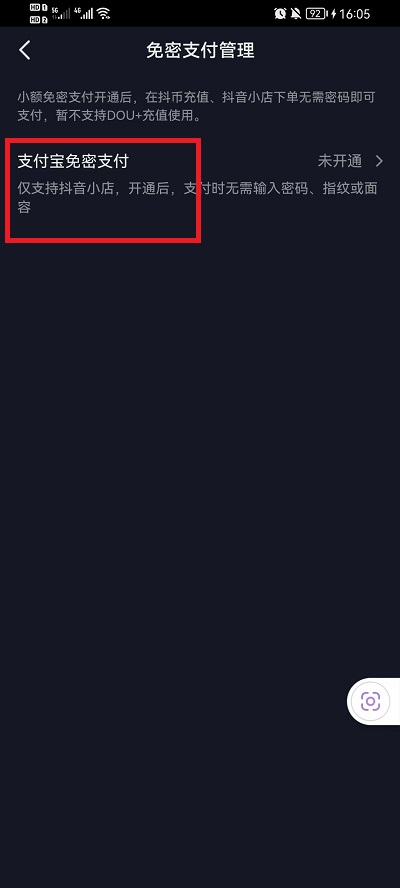 4、在管理界面中就可以看到【免密支付管理】打开;