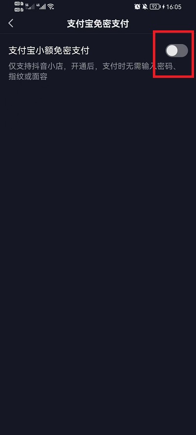 6、最后在其界面中点击关闭【支付宝小额免密支付】按钮就可以关闭免密支付。