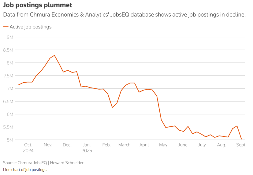 Chmura Economics & Analytics经济学家弗朗西斯科·伦纳(Francesco Renna)表示,该公司的JobsEQ数据库显示,当前职位空缺数量同比下降超7%,较2023年下降27.1%,降幅“显著”。“美国就业增长确实在失去动力。”他说。