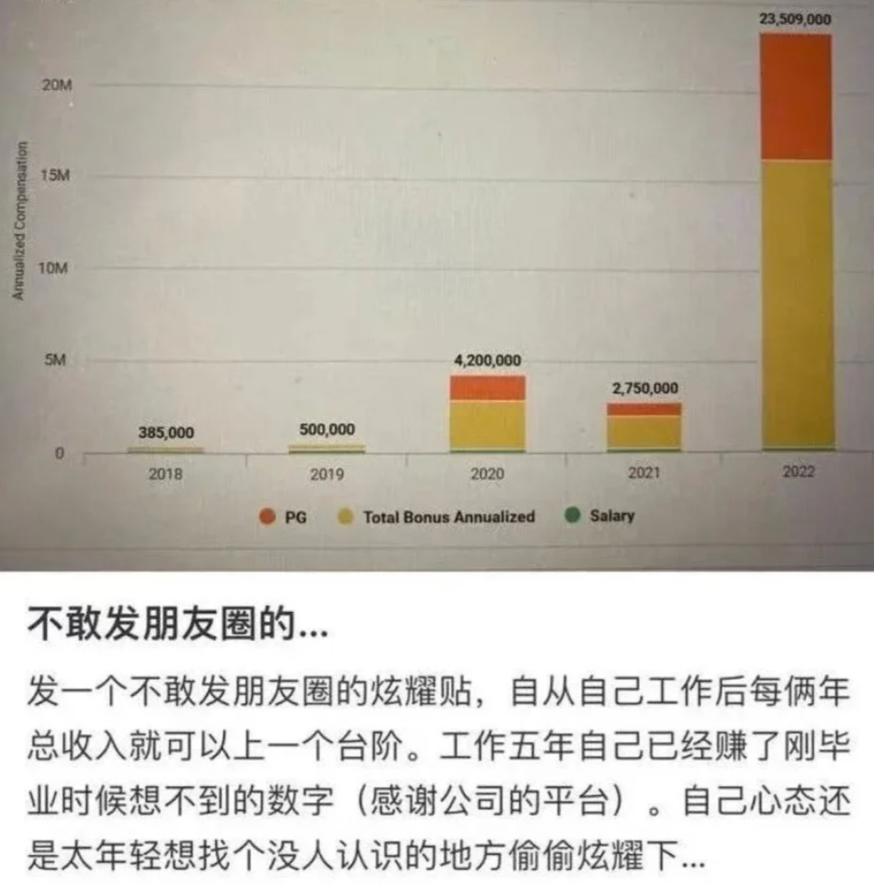 真正引爆舆论和公司调查的,是他在社交媒体上的“年轻气盛”。2023年1月2日,小红书上一位昵称“都是宝”的用户发帖,自称2022年收入2350万美元,还配图晒出了明细。他写道: