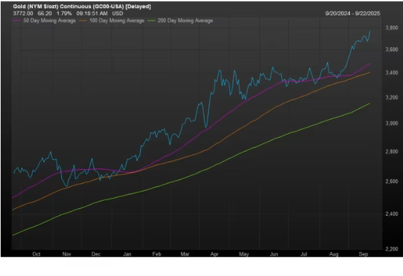 周一,12月交割的黄金在Comex市场上攀升69.30美元,收于每盎司3775.10美元,这是最活跃的黄金合约有记录以来的最高收盘价。据道琼斯市场数据,这标志着该金属今年迄今的第36个创纪录收盘高点。