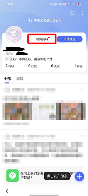 3、然后在头像的右侧,点击【编辑资料】修改你的个人信息;