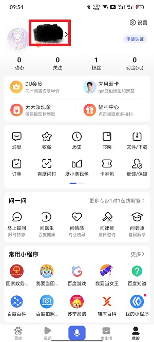 1、以手机端百度为例,在手机上下载百度app,登录你需要修改名字昵称的账号,点击进入【我的】页面;