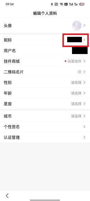 4、点击【昵称】打开修改窗口;