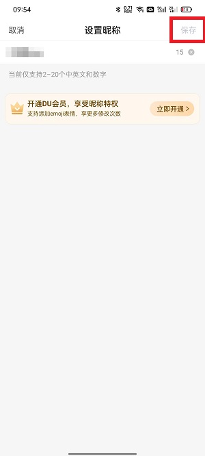 5、最后在设置昵称页面,输入你需要设置的昵称,点击右上角的【保存】即可。
