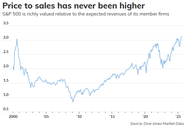 与成分股公司带来的收入相比,标普500指数从未像现在这样昂贵。