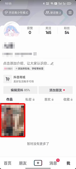 2、然后在我的页面,在【作品】的下方选择需要删除的视频,点击进入视频播放页面;