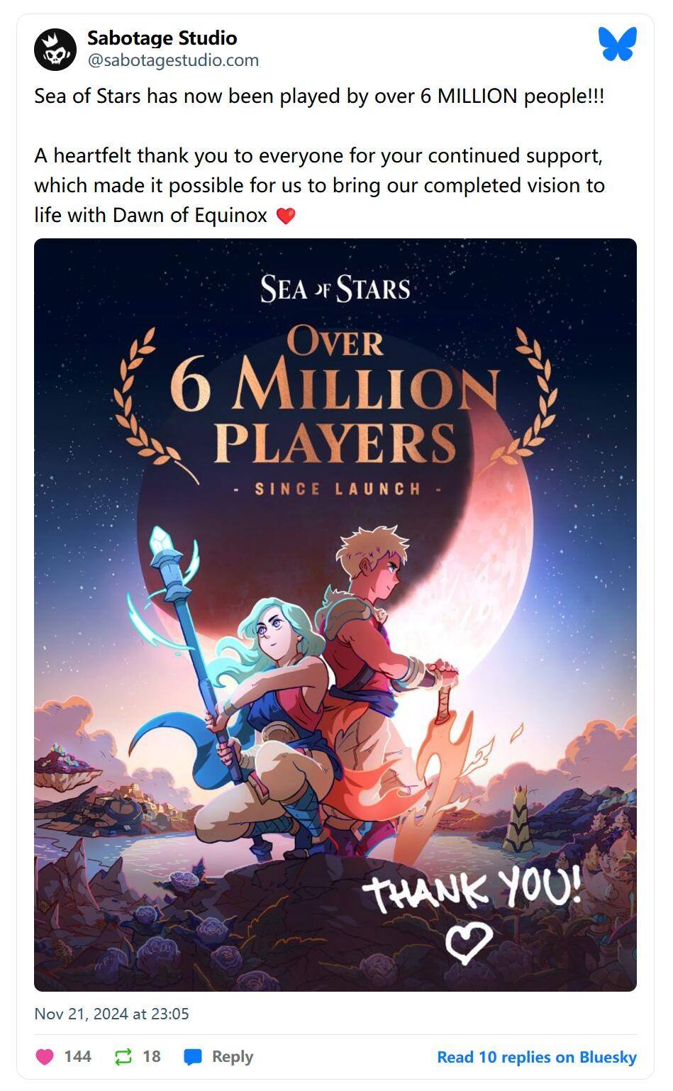 自去年8月份上市以来,《星之海》游戏已经赢得了众多忠实粉丝的喜爱与赞誉,它卓越的品质以及独特的复古回合制角色扮演玩法,无疑会持续吸引更多玩家的加入。开发商Sabotage Studio近日也宣布,他们在销售业务方面又上一层。