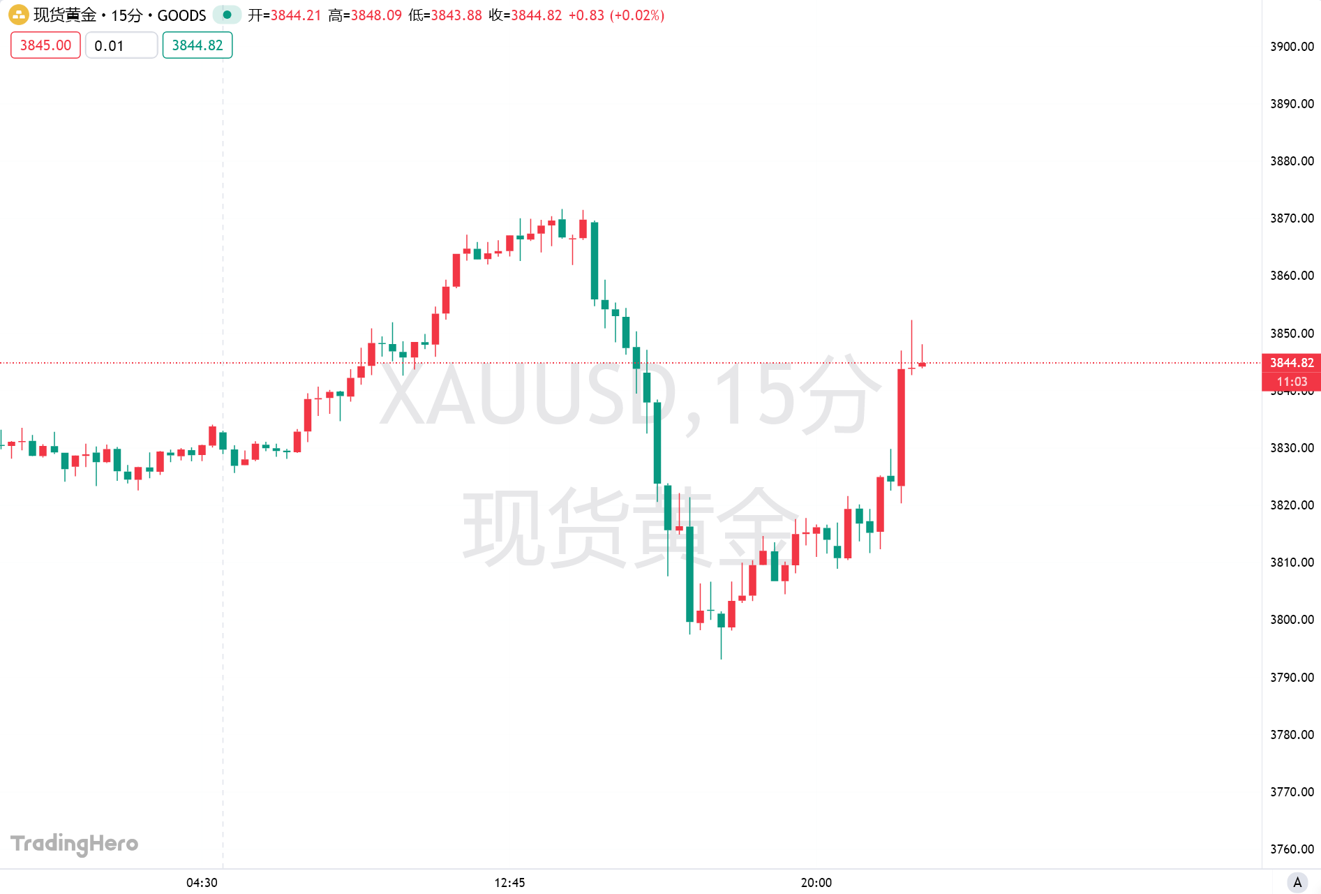 周二,现货黄金触及每盎司3870美元以上的历史新高后回落,一度向下跌破3800关口,但美盘再度走高,抹去日内全部跌幅。