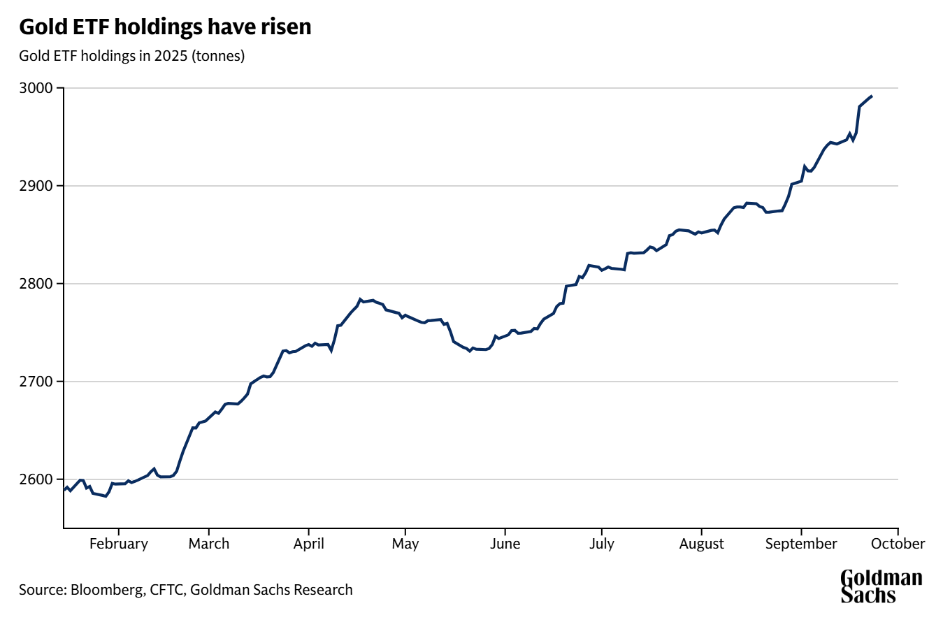 高盛研究部分析师莉娜·托马斯(Lina Thomas)在团队报告中写道,预计到明年年中,金价将升至每盎司4000美元。这一预测主要受两大因素驱动:各国央行强劲的结构性需求,以及美联储的宽松政策(这将提振黄金ETF的需求)。