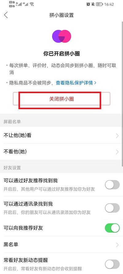 拼多多拼小圈怎么关闭