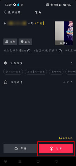 5、最后只需要编辑好文案还有需要添加的话题等,就可以完成合拍发布合拍视频。