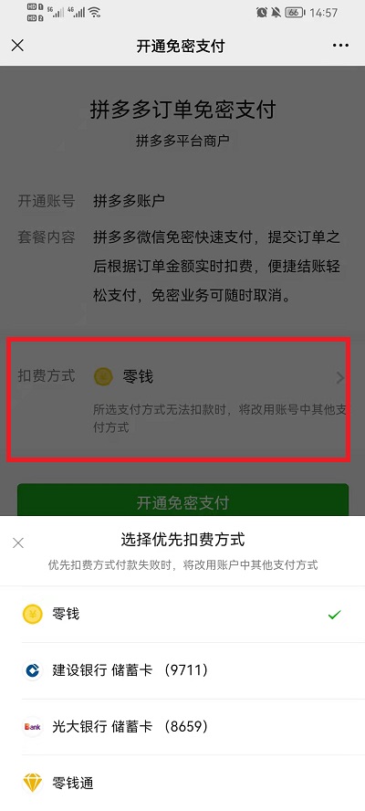拼多多免密支付是从哪里扣钱的