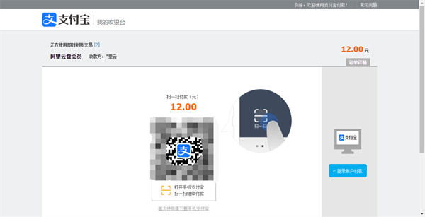 5、最后会跳转到支付宝网页版,使用手机支付宝扫一扫二维码付款,或点击【登录账户】登录你的支付宝账号直接购买。