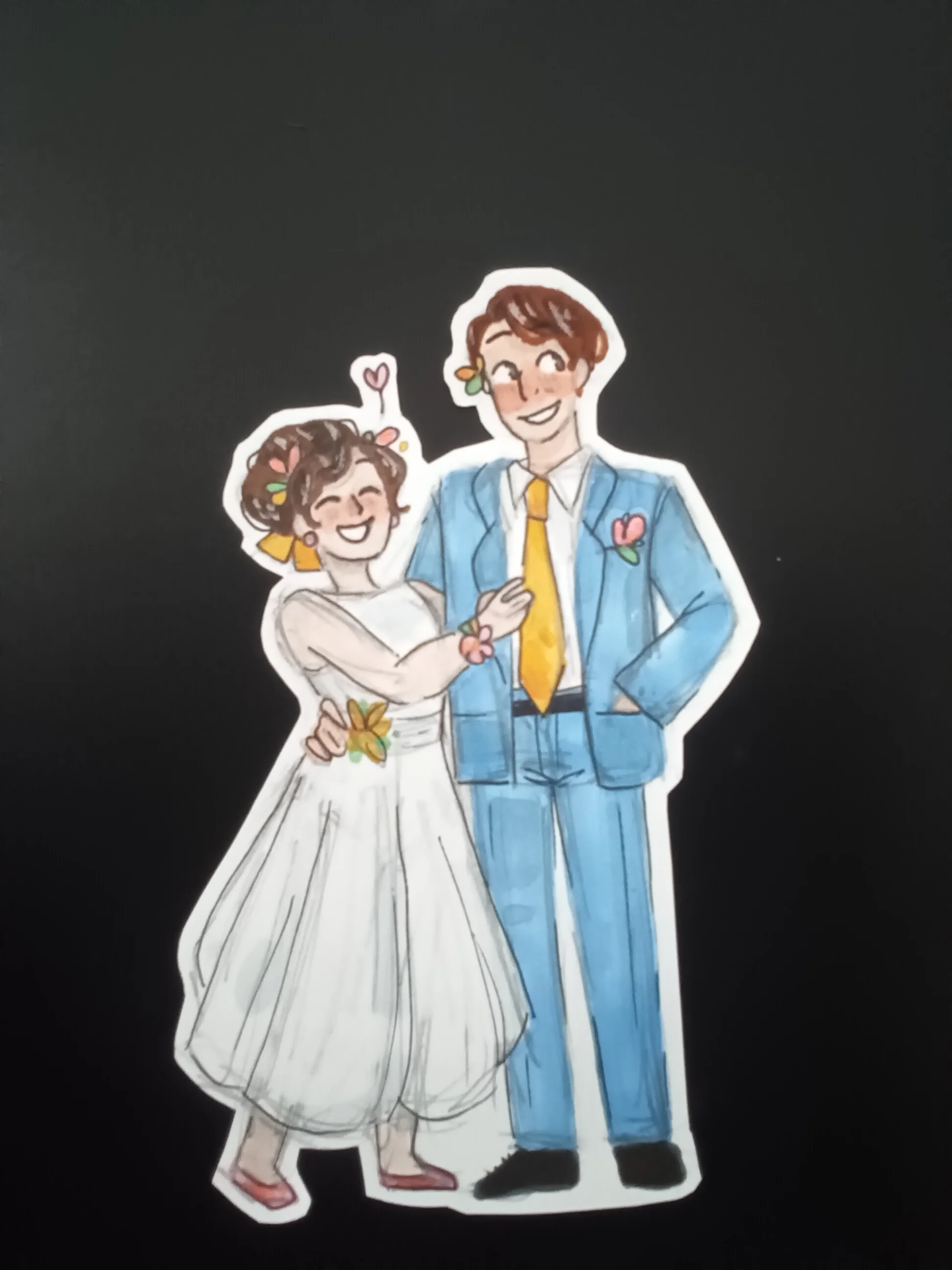 在Ok-Oil-7047的画作中,乔治和艾芙琳身着可爱的服装,展现出恩爱有加的样子。画面一侧描绘了他们年轻时在舞会上的场景,充满了活力与浪漫;而另一侧则呈现了他们年长的温馨瞬间,体现出岁月的沉淀与爱情的延续。
