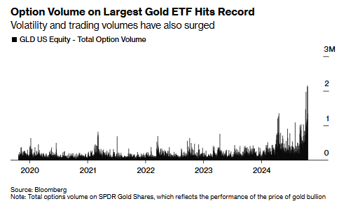 近几日贵金属的波动性飙升,交易员似乎只有两种选择:要么在对其投资组合其他部分的潜在价格下跌进行对冲,要么试图从下跌中获利。与全球最大黄金支持型ETF挂钩的期权合约在上周四和上周五两天的成交量合计超过200万张,打破先前纪录。