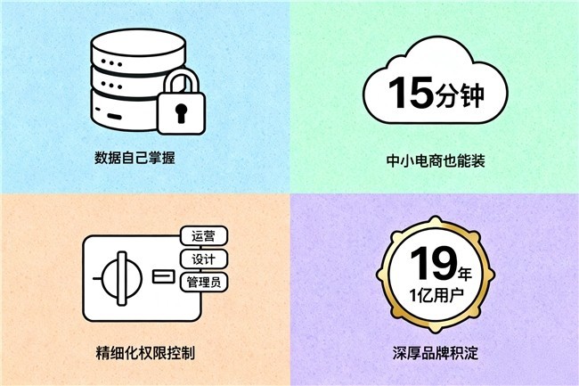 ● 数据完全自主:所有账号、客户、订单数据存企业私有空间,不经过第三方,符合国内电商合规要求,不怕数据泄露;