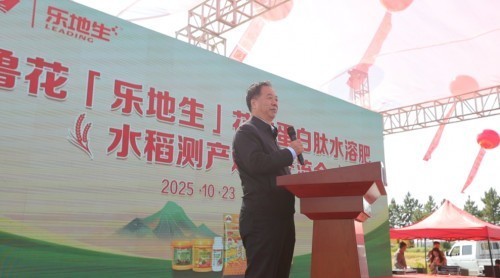 “鲁花‘乐地生’水溶肥在提升作物产量与改善品质上的显著成效,不仅为我国稻米产业注入新动能,更对乡村全面振兴、推动农业高质量发展以及保障国家粮食安全具有十分重要的意义。”中国农业技术推广协会会长陈生斗由衷地说,鲁花作为农业产业化国家重点龙头企业,充分发挥中国花生油第一品牌的产业优势、技术优势、渠道优势以及花生饼粕的原料优势,创新研发出了具有活性的花生小分子蛋白肽水溶肥。这种肥料在全国各地多种作物上应用,取得了显著的提质增产效果。据初步统计,在大豆上测产,武汉农科院的测产结果是增产16.7%,而在黑龙江的五常区域测产大豆,增产25.39%;在小麦、玉米、棉花、花生上测产,均增长15%以上;在莱阳梨、秋月梨上测产,增长20%以上;还有在葡萄、苹果、猕猴桃、樱桃、大桃、草莓、包括茄子、大白菜、萝卜、黄瓜等蔬菜,都有明显的提质增产效果。今天在万年,我们是实地测产、实收测产的结果,增产了14.04%,这是非常了不起的。陈会长进一步指出,粮食安全是国之大者,科技创新是重要的支撑。鲁花坚持为农服务、为农业生产提供保障做出了重要贡献。这次我们在万年的实验示范,为全国水稻的绿色种植和单产提升提供了一个可复制的范本。中国农业技术推广协会将一如既往地支持农业科技成果的转化应用,进一步与各有关单位加强合作,共同推进农业科技的进步。同时也希望鲁花要发挥技术优势,特别是与产学研深度融合,不断加强示范展示、技术培训和技术推广,要把这些好产品应用在更大的领域内。我们期待万年经验能够在全国其它产区得到应用推广和发扬光大。