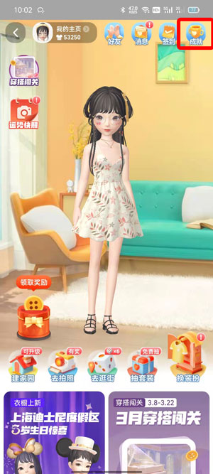 3、进入淘宝人生之后,在右上角点击【成就】;