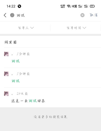 4、最后我们就能搜索到自己朋友圈的内容了;