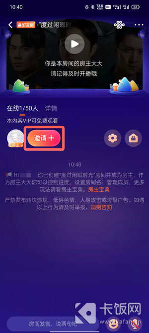 3、进入自动创建的好友房间之后,点击【邀请】按钮;