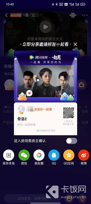 4、然后选择通过二维码或者链接的方式邀请好友,好友点击链接,或使用腾讯视频扫一扫二维码进入房间;