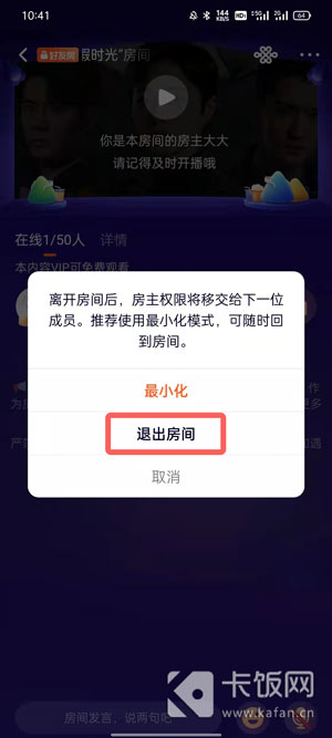 7、如果大家需要退出房间,只需要通过手机导航栏选择返回即可,点击提示窗口的【退出房间】,退出后房主将移交给下一位成员。